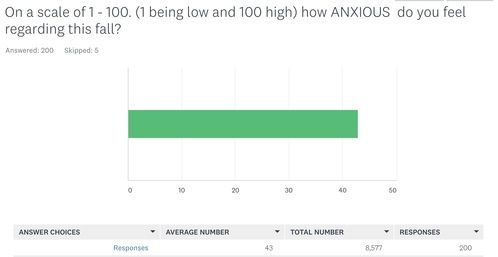 *Some of the responses for this question included people who are not feeling anxious at all to others feeling very anxious for an average score of 43 out of 100 on the anxiety meter.